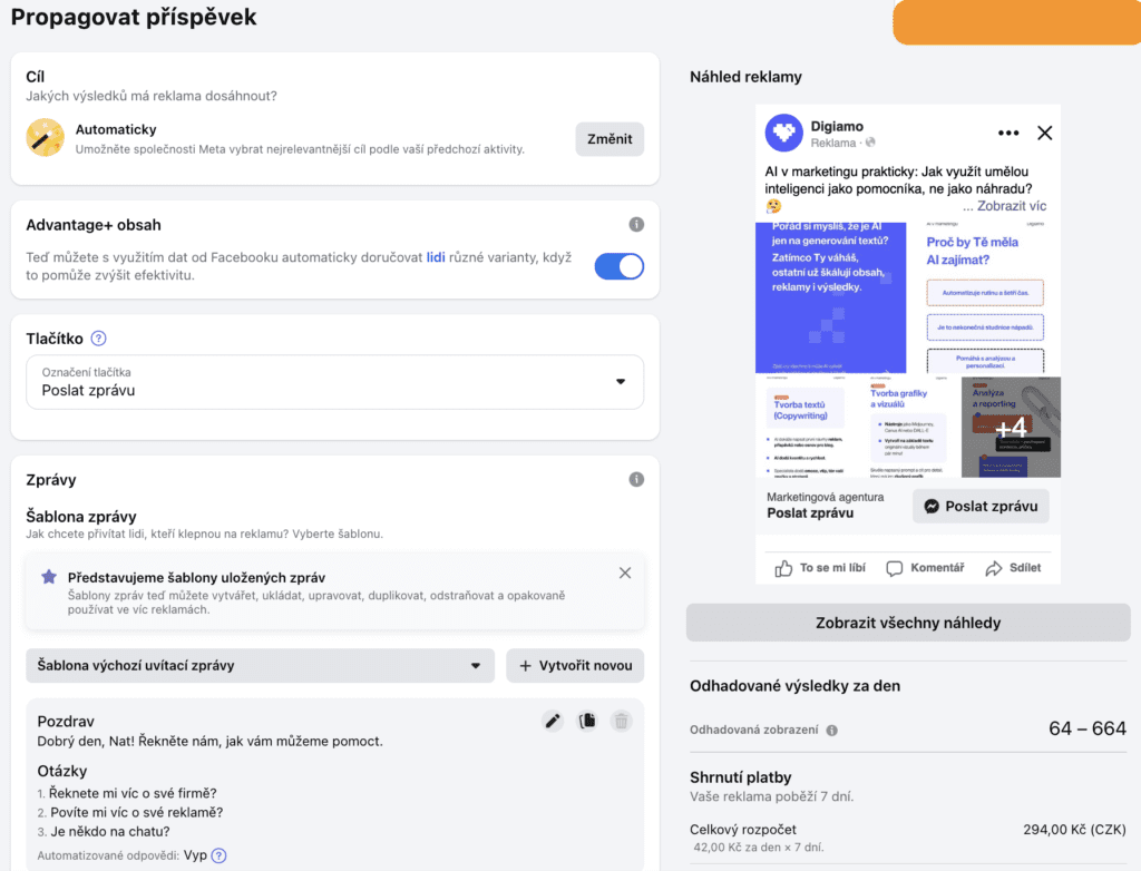 Automatizace přináší jednodušší způsoby nastavení kampaní a obecně můžeme říct, že Facebook se co nejvíce snaží přizpůsobit novému a nezkušenému uživateli tak, aby měl v systému co nejméně práce a vše bylo na pár kliknutí.