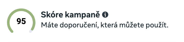 Skóre kampaně, které vám při nastavování svítí v pravém horním rohu se na základě omezujících nastavení může snižovat. Meta se tak snaží, aby s kampaní měla co nejvolnější ruku. Nebojte se, pokud se vám skóre na základě specifikace zobrazení a jiných úprav o něco sníží. Nemá to zásadní vliv na běh kampaně.