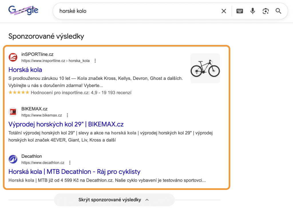 Jakmile uživatel zadá vyhledávací dotaz do Googlu, zobrazí se řada výsledků z toho prvních několik pozic jsou sponzorované reklamy. Na základě hodnocení Googlu (kvality reklamy, nabízené ceny za proklik, relevance stránky…) se výsledky seřadí. Samozřejmě čím výš se se svou reklamou zobrazíte, tím větší je pravděpodobnost, že na ni uživatel klikne. Po tomto úseku již máme klasické organické výsledky, ve kterých se zobrazujeme již na základě kvalitního SEO.