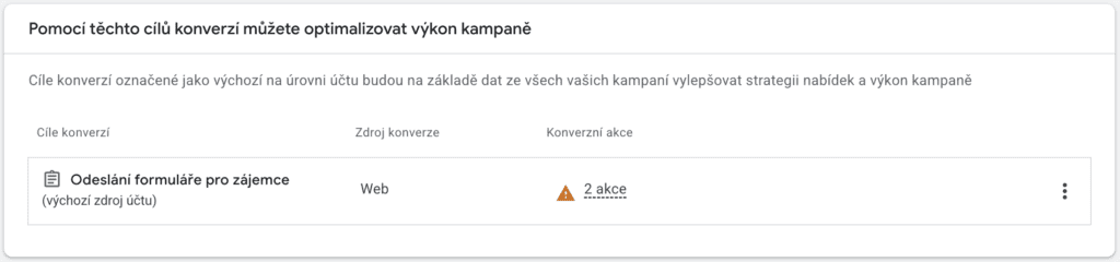 Zde zkontrolujte konverzní akce, které jste nastavovali prostřednictvím Google Analytics.