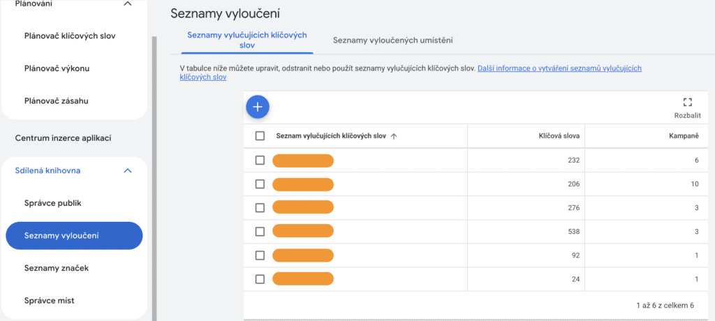 Pro nevhodné výrazy, na které se zobrazí naše reklama, existuje funkce vylučování. V sekci Statistiky a přehledy > Vyhledávací dotazy můžete vyloučit ty výrazy, na které se nepřejete v budoucnosti zobrazovat. Můžete si z takovýchto výrazů dělat složky a následně v Nástroje > Sdílená knihovna > Seznamy vyloučení si vést seznamy, které lze aplikovat na další kampaně.