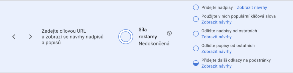 Po poctivém vyplnění by vaše reklama měla ideálně zaujímat silné hodnocení. Síla reklamy je součástí tzv. Skóre kvality (Quality Score). Reklama od Googlu dostane číslo od 1–10 s tím, že čím vyšší je, tím lépe. Toto hodnocení se skládá hned z několika faktorů, kterými je například vstupní stránka, relevance klíčových slov nebo reklamy.