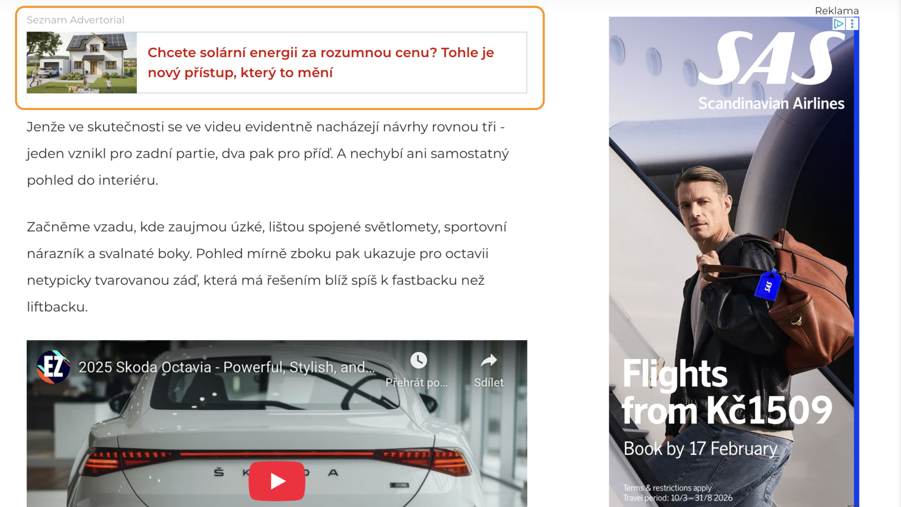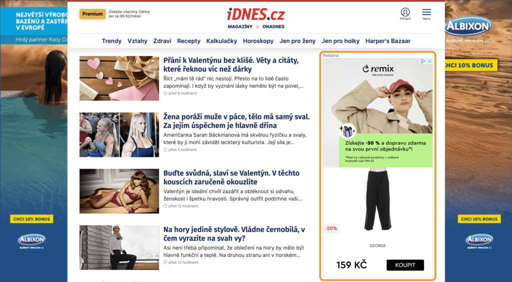 Vizuální reklama zobrazující se na Seznamu a tisících webech, které spadají či mají spolupráci se Seznamem.