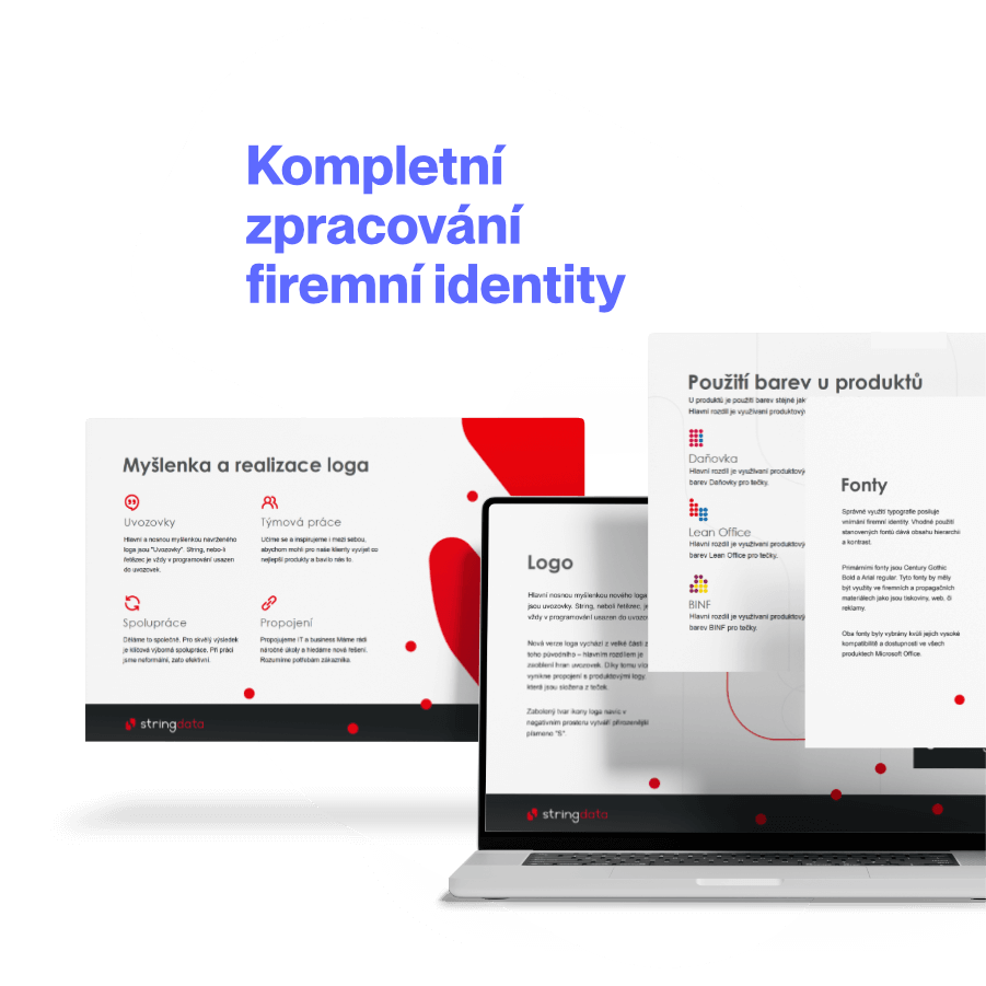 Naším prvním úkolem bylo vytvoření nové vizuální identity. Pracovali jsme na tom, aby odrážela inovativní charakter Stringdata a aby byla moderní a dynamická. Výsledkem byla vizuální identita, která odpovídala hodnotám a cílům společnosti.
